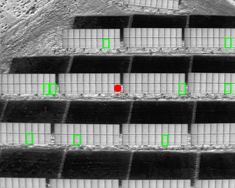 光伏電站無人機(jī)巡檢系統(tǒng),在無人機(jī)上搭載熱紅外和可見光雙光相機(jī),以完成光伏組件的熱成像和可見光檢測。系統(tǒng)可將無人機(jī)拍攝畫面實時傳輸并在管控平臺進(jìn)行監(jiān)測,還可將采集過程中實時存儲的數(shù)據(jù)快速導(dǎo)出至電腦端,后續(xù)利用無人機(jī)診斷軟件對無人機(jī)采集的熱紅外圖像和可見光圖像進(jìn)行智能化處理,實現(xiàn)組件不發(fā)電檢測、灰塵污垢遮擋、組件裂紋破損等故障引起的光伏組件熱斑診斷、標(biāo)記、分析和定位,大大提高光伏電站的巡檢效率和故障診斷能力,進(jìn)而實現(xiàn)對光伏電站的智能化全生命周期管理。