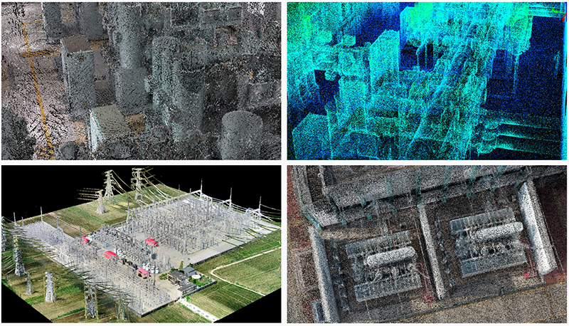 使用無人機和地面掃描設(shè)備對變電站進行空地一體化、室內(nèi)外一體化巡檢服務(wù)。利用我公司專為變電站研發(fā)的巡檢無人機搭載激光雷達設(shè)備對變電站進行掃描,建立激光點云三維模型,進行臺賬綁定與三維航線自動規(guī)劃,通過智能管控平臺實現(xiàn)無人機搭載可見光和紅外設(shè)備對變電站完成智能自主巡檢。