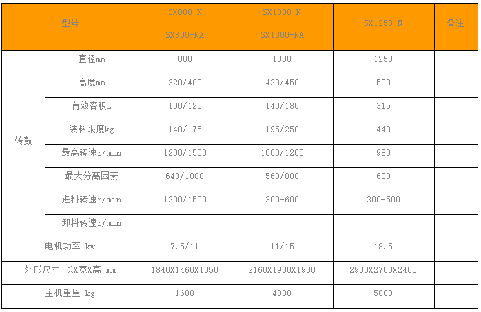 主要離心機產(chǎn)品型號規(guī)格